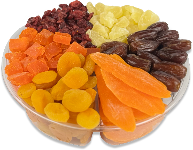 Dried Fruit Tray- 2 1/2 lb. Apricots, Cranberries, Dates, Mango, Papaya and Pineapple